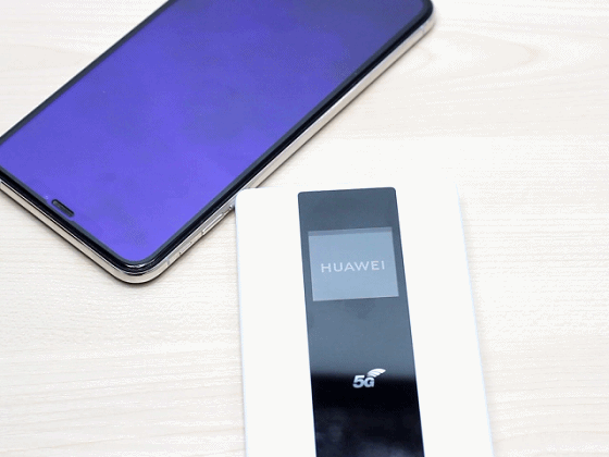 中间黑色的面板有5G信号Logo,底部是“HUAWEI”字样,顶部是一块单色的1.45英寸LCD屏,这块屏幕主要显示设备网络信号强度以及相关的设置。