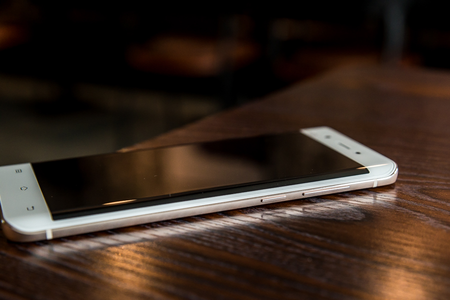 ▲从这个角度可以看出vivo Xplay5的曲面屏幕与金属中框形成了一个较明显的落差,与三星S7 edge相比,Xplay5的金属中框要稍为突出一点,这种做法其实有利有弊。虽然在手感上来说的确少了几分圆润,而且摸起来确实会觉得有点硌手,但比起三星S7 edge来说,Xplay5的金属中框无疑能让手机在意外跌落时,屏幕的损伤机率降低一些。
